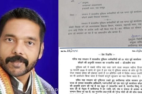 बालोद। रमजान माह के दौरान शासकीय मुस्लिम कर्मचारियों को ड्यूटी समय समाप्ति से एक घंटे पूर्व अवकाश दिए जाने संबंधी कथित आदेश को लेकर प्रदेश में विवाद गहराता जा रहा है। सोशल मीडिया पर वायरल एक पत्र के बाद राजनीतिक बयानबाजी तेज हो गई है और अब इस मुद्दे पर जवाबदेही तय करने की मांग…