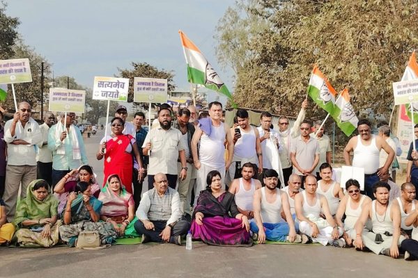 मनरेगा बचाओ संग्राम और धान खरीदी तिथि बढ़ाने की मांग को लेकर कांग्रेस का चक्काजाम,लाटाबोड़ में अर्धनग्न प्रदर्शन