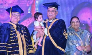 कार्यक्रम को संबोधित करते हुए मुख्यमंत्री श्री बघेल ने कहा कि फ्रांस की प्रतिष्ठित सोरबोन यूनिर्विसिटी ने छत्तीसगढ़ शासन के विकास कार्यक्रमों को सराहा है और मुझे आज डॉक्टरेट की मानद उपाधि से नवाजा है, इसके लिए बहुत-बहुत धन्यवाद। जब काम करना शुरू किया तो बस ये चाह थी कि अच्छा काम करते रहना है। काम करते गए और रास्ता निकलता गया। ये उपाधि जरूर मुझे मिली है लेकिन इसके पीछे योगदान मेरे परिवार वालों का है। जनप्रतिनिधियों का है अधिकारी-कर्मचारियों का है। यह सम्मान छत्तीसगढ़ के सभी मेहनतकश लोगों का सम्मान है जिन्होंने अपने श्रम से छत्तीसगढ़ को खड़ा किया।