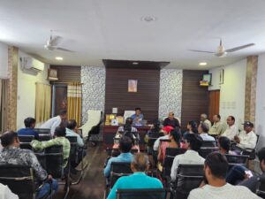 जिसमें मुख्य रुप से नगर पालिका सीएमओ अग्रहरी सिद्दीकी सहित सभी विभाग प्रमुख उपस्थित रहे। बैठक में विकास चोपड़ा ने राजस्व अधिकारी को निर्देशित करते हुए कहा कि सुनिश्चित किया जाए की 24 अगस्त को निकलने वाली कलश शोभायात्रा के दौरान शहर के प्रमुख मार्गों के आसपास कोई भी वाहन खड़ी ना हो और ना ही किसी प्रकार का निर्माण सामग्री रोड के आसपास मौजूद हो इसके लिए तत्काल आवश्यक कार्रवाई करें,, जल विभाग अधिकारी को कहा गया है कि शहर के सभी प्याऊ घरों तत्काल प्रारंभ करवाए व विभिन्न स्थानों पर पानी की व्यवस्था के लिए अस्थाई पानी टैंकर लगाए जाने के लिए स्थल का चयन अभी से कर लेवे, स्वास्थ्य विभाग के अधिकारी को निर्देशित किया गया कि शहर के सभी सार्वजनिक शौचालय की देखरेख करें यदि कोई काम है तो तत्काल करने और 2 दिन में पूरी रूपरेखा बनाकर फिर होने वाली बैठक में पूरी रूप रेखा से अवगत कराने की बाते कही।