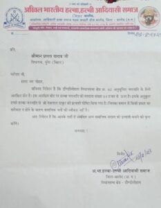 बालोद – भाजपा द्वारा 17 अगस्त की देर शाम छत्तीसगढ़ के 21 विधानसभा के उम्मीदवारों की घोषणा की थी जिसके बाद से सभी प्रत्याशी अपने चुनाव प्रचार अभियान में जुट चुके है । लेकिन दूसरी तरफ बालोद जिले के आरक्षित डौंडी लोहारा विधानसभा के लिए भाजपा द्वारा घोषित उम्मीदवार देवलाल ठाकुर को लेकर विधानसभा के हल्बा हल्बी समाज अब विरोध कर रही है मामले को लेकर समाज 26 अगस्त को अ.भा हल्बा हल्बी आदिवासी समाज द्वारा डौंडी लोहारा के प्रभारी व बिहार के मुंगेर से भाजपा विधायक मुंगेर यादव के को पत्र लिखकर प्रत्यासी बदलने की मांग की है।