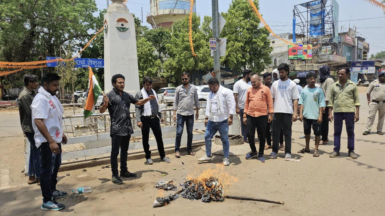 बालोद….जम्मू कश्मीर के पहलगाम में पर्यटकों पर हुए आतंकी हमले की निंदा एवं विरोध करते हुए बालोद युवा कांग्रेस द्वारा जयस्तम्भ चौक में किया आंतकवाद का पुतला दहन…..मामले को लेकर यूंका जिलाध्यक्ष ने कहा मिनी स्विट्ज़रलैंड के नाम से मशहूर इस पर्यटन स्थल पर मंगलवार दोपहर हुए आतंकवादी हमले में 26 लोगों की मौत हो गई इनमें से ज्यादातर पर्यटक है …यह 2019 में पुलवामा में हुए हमले के बाद घाटी में हुआ सबसे बड़ा घातक हमला है …..जिसकी बालोद युवा कांग्रेस कड़ी निंदा करते हुए मृतकों को श्रद्धांजलि अर्पित करते है। इस कार्यक्रम में प्रमुख रूप से जिला युवा कांग्रेस महामंत्री आदित्य दुबे, पार्षद सुमित शर्मा, युवा नेता वैभव शर्मा, वैभव साहू, दिनेश्वर साहू, आयुष राजपूत, फैज अली, उमर अली, सभी युवा कांग्रेस के साथी उपस्थित थे।