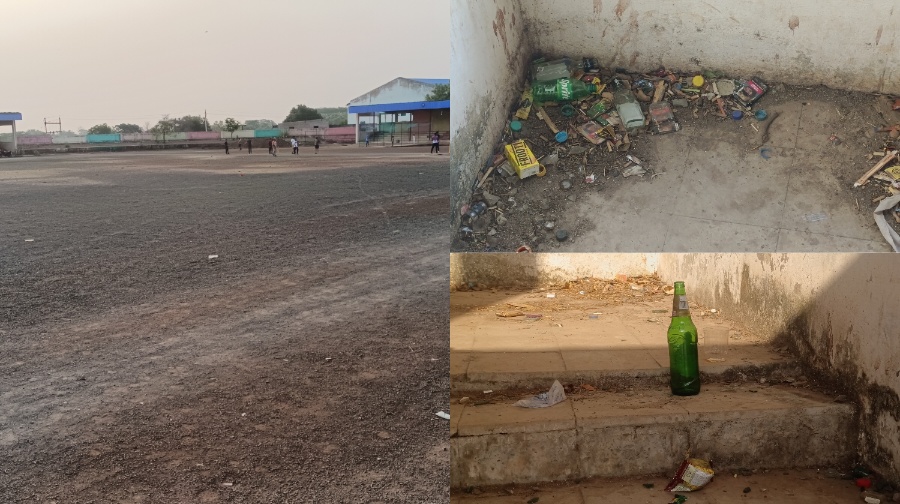 स्टेडियम की हालत इतनी खराब है कि चारों तरफ गंदगी, गैलरी में टूटी शराब की बोतलें, रेत और गिट्टियाँ बिखरी हुई हैं। घास लगाने के नाम पर सरकारी राशि तो खर्च की गई, लेकिन नतीजा शून्य है। जगह-जगह बिछी गिट्टियों के कारण खिलाड़ी घायल हो रहे हैं। टूटी बोतलों से पैरों में कट लगना आम हो गया है।