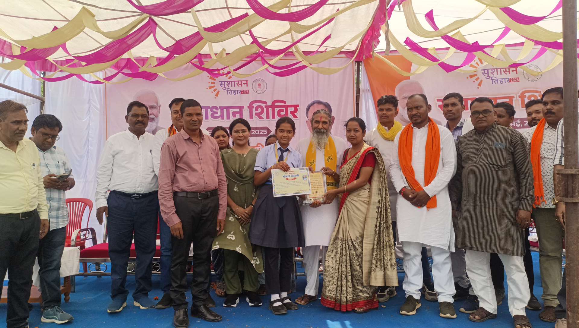 समाधान शिविर के दौरान उस समय माहौल उत्साहपूर्ण हो गया जब हाल ही में छत्तीसगढ़ माध्यमिक शिक्षा मंडल द्वारा आयोजित 10वीं बोर्ड परीक्षा में प्रदेश की टॉप-3 सूची में स्थान प्राप्त करने वाली एक स्थानीय छात्रा को सम्मानित किया गया। सांसद भोजराज नाग और अधिकारियों ने छात्रा को मंच पर प्रशस्ति पत्र और प्रतीक चिह्न देकर सम्मानित किया।