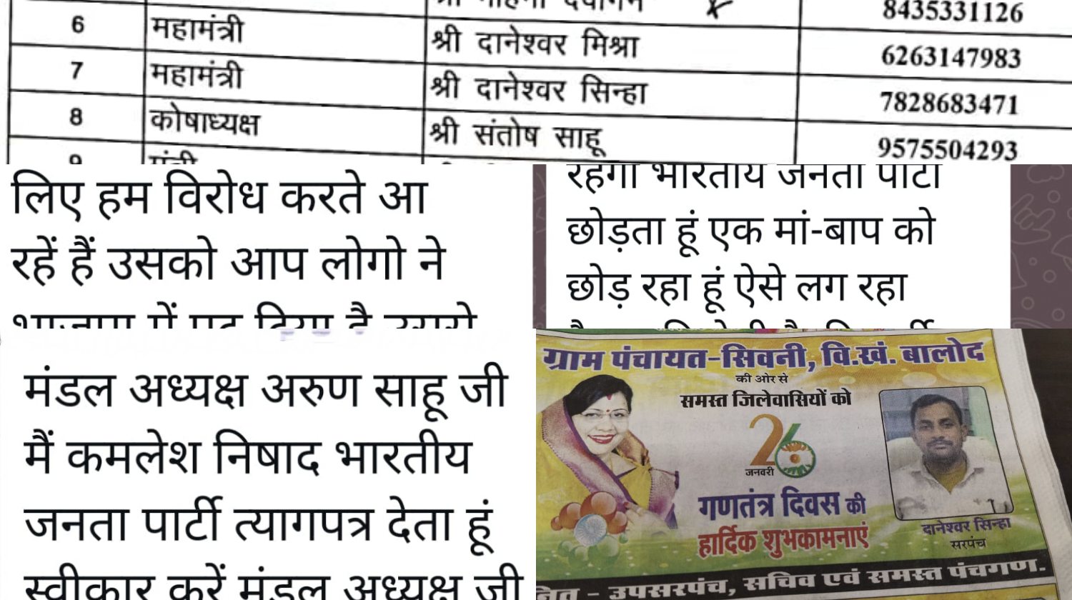 बालोद। भारतीय जनता पार्टी बालोद जिला संगठन द्वारा हाल ही में घोषित किए गए नवगठित जूँगेरा मंडल की कार्यकारिणी को लेकर स्थानीय स्तर पर असंतोष की स्थिति बन गई है। मंडल कार्यकारिणी में कुछ नियुक्तियों को लेकर पुराने और ज़मीनी कार्यकर्ताओं ने अपनी नाराजगी जताई है।