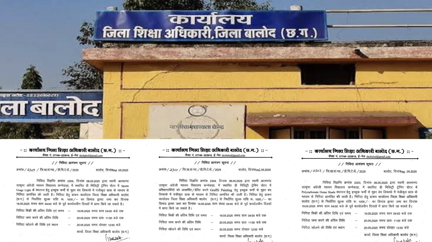 बालोद – बालोद जिले में शिक्षा विभाग द्वारा खनिज न्यास मद (DMF) से वित्तपोषित पॉलीकार्बोनेट डोम शेड निर्माण, ग्राफिटी पेंटिंग और स्पोर्ट्स यूसेज लाइट्स की आपूर्ति एवं स्थापना के लिए जारी निविदा प्रक्रिया पर गंभीर सवाल खड़े हो गए हैं। स्थानीय ठेकेदारों और कांट्रेक्टर एसोसिएशन ने इस प्रक्रिया को अनुचित बताते हुए इसमें पारदर्शिता की कमी और नियमों के उल्लंघन का आरोप लगाया है।