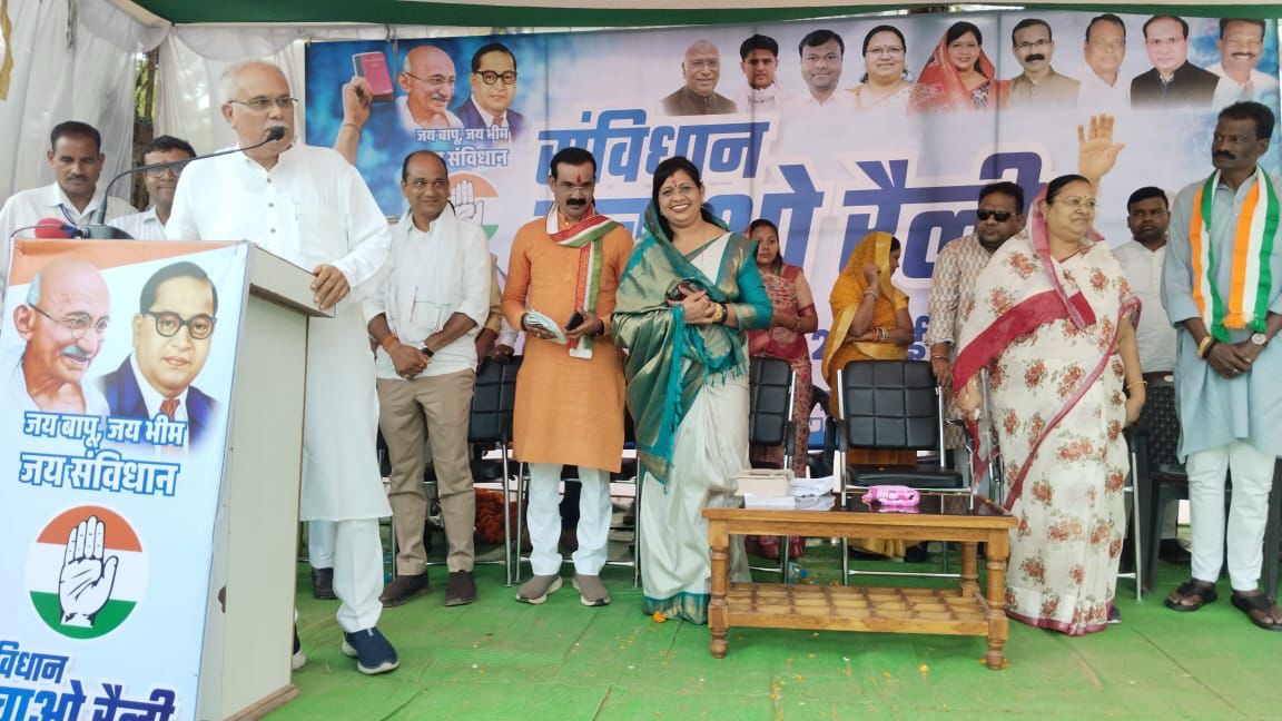 उक्ताशय के उद्गार बालोद जिले में आयोजित संविधान बचाओ न्याय यात्रा को संबोधित करते हुए छत्तीसगढ़ के पूर्व मुख्यमंत्री भूपेश बघेल ने कहा। उन्होंने आगे कहा की जातिगत जनगणना करने की घोषणा तो सरकार ने कर दी है लेकिन कब से लागू करेंगे इस पर अभी भी टालमटोल कर रहे हैं। वैसे ही महिला आरक्षण के संबंध में भी उन्होंने संसद में पास तो कर दिया है लेकिन कब से लागू होगा, ना तो प्रधानमंत्री जी बता पा रहे हैं, ना बीजेपी का कोई जिम्मेदार । आज हम लोग खुले मंच से जो बोल पा रहे हैं वह भी संविधान के दम पर ,सरकार का विरोध कर पा रहे हैं वह भी संविधान के दम पर, अपना विरोध करने वालों को प्रधानमंत्री बर्दाश्त नहीं कर पाते हैं। इसीलिए सरकार का विरोध करने का अधिकार देने वाले संविधान को बदल देने की मंशा भाजपा की है। जब हम भाजपा सरकार के भ्रष्टाचार को उजागर करते हैं जब हम उनके जनविरोधी नीतियों का विरोध करते हैं तो कांग्रेस के नेताओं के ऊपर झूठे मामलों में अपराध दर्ज किया जाता है नेशनल हेराल्ड के मामले में झूठी कहानी गढ़ी जा रही है, और देश को झूठ परोसा जा रहा है। आज भी पहलगाम हमले के आरोपियों को सरकार पकड़ नहीं पाई है पुलवामा में सैकड़ो टन बारूद कहां से आया, हमारे सेना के नौजवानों पर हमला करने वाले आतंकवादियों को आज तक नहीं पकड़ा जा सका । कांग्रेस जब इसका विरोध करती है तो कांग्रेस के नेताओं के घर ED, IT, और CBI भेज कर डराने का प्रयास करती है भाजपा की सरकारी भूल जाती है कि कांग्रेस का हर सिपाही अंग्रेजों से लड़ने वाला सिपाही है जब कांग्रेस अंग्रेजों से नहीं डरा तो इन काले अंग्रेजों के झूठ साजिशों से कैसे डर सकते हैं।