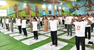 कार्यक्रम में योगाचार्य पुरुषोत्तम राजपूत और उनकी टीम ने ओंकार मंत्र के साथ योगाभ्यास की शुरुआत कराई।