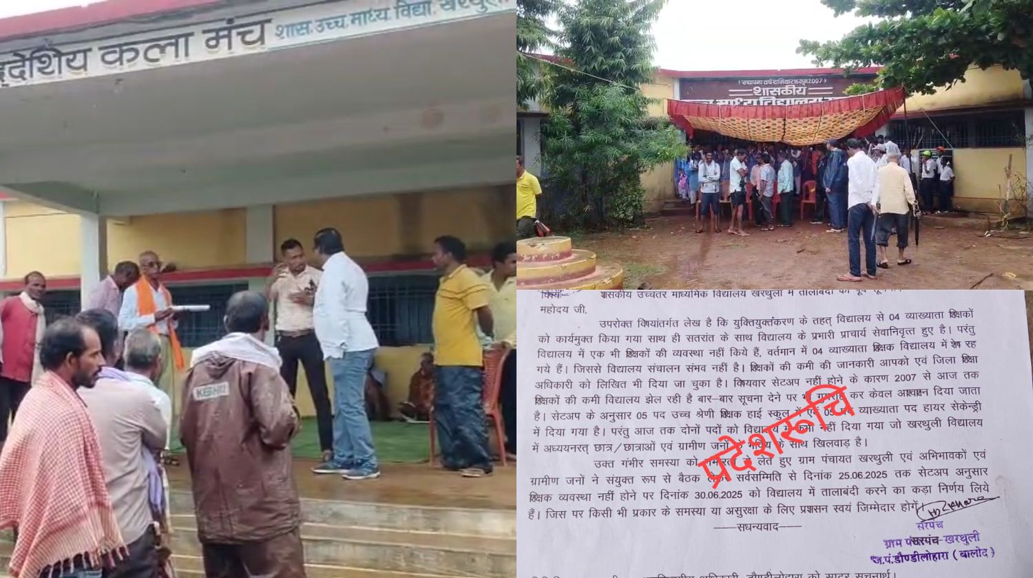 बालोद।जिले के अंतर्गत आने वाले ग्राम खरथुली में आज शिक्षा व्यवस्था की लचर हालात के खिलाफ ग्रामीणों का गुस्सा फूट पड़ा। शासकीय उच्चतर माध्यमिक विद्यालय खरथुली में लंबे समय से शिक्षकों की कमी को लेकर ग्रामीणों द्वारा प्रशासन को कई बार अवगत कराने के बावजूद जब कोई ठोस कार्रवाई नहीं हुई, तो आक्रोशित ग्रामीणों ने सोमवार, 30 जून को विद्यालय में तालाबंदी कर दी।