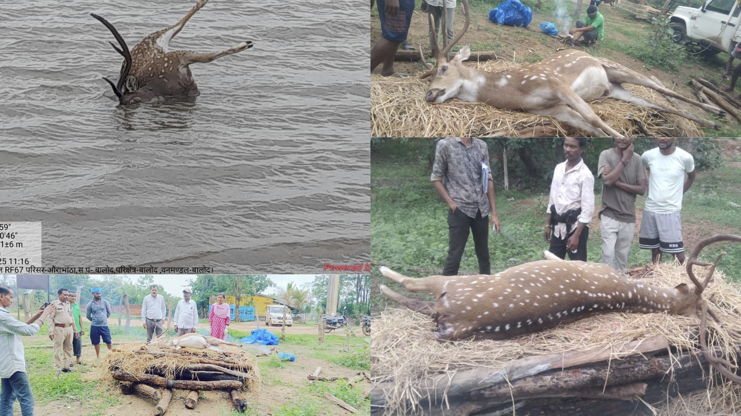 वन विभाग के मुताबिक दोनों नर हिरणों पर लकड़बग्घे ने हमला किया था — एक का शिकार हुआ और दूसरा डर से डूब मरा।