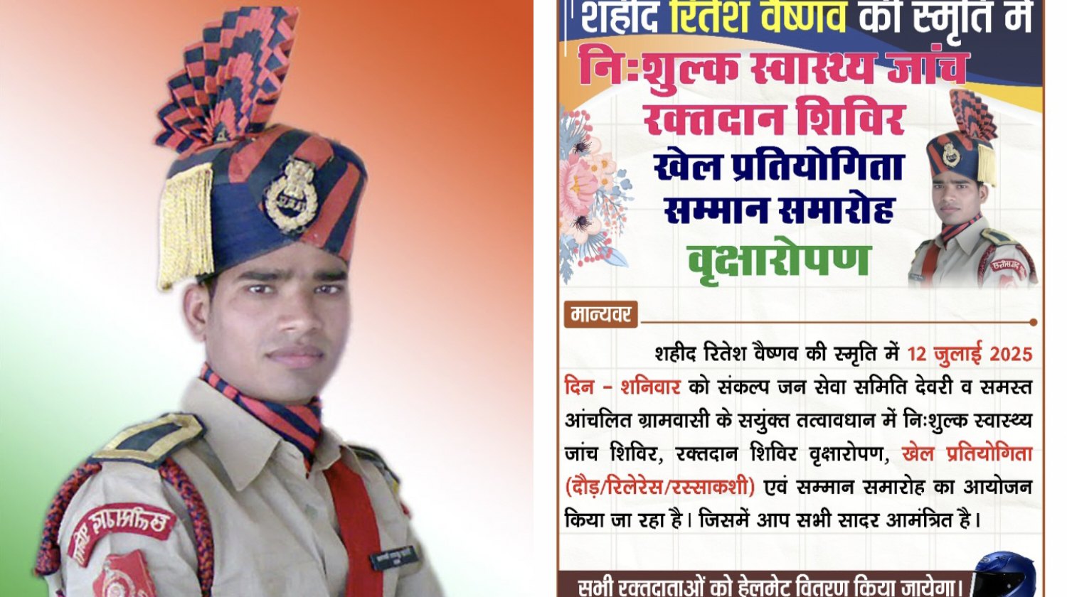 शहीद रितेश वैष्णव की याद में यह आयोजन केवल एक स्मृति कार्यक्रम नहीं, बल्कि समाज को सेवा, सुरक्षा और संस्कार का पाठ पढ़ाने वाला प्रेरक उदाहरण बन रहा है।