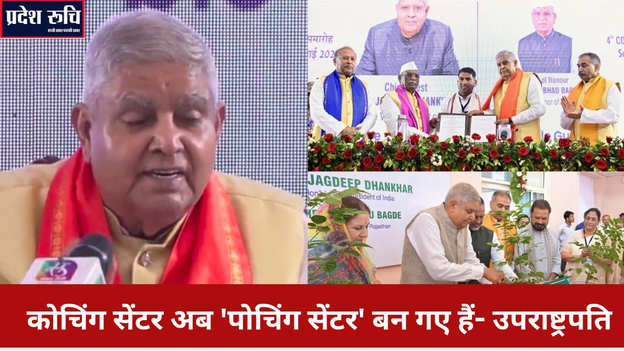 उपराष्ट्रपति ने कहा कि कोचिंग सेंटर उत्तम ग्रेड और मानकीकृत अंकों की ऐसी अंधी दौड़ चला रहे हैं, जिसमें छात्रों की जिज्ञासा दम तोड़ रही है। उन्होंने चेताया कि यह सिर्फ परीक्षा पास कराने की व्यवस्था नहीं, बल्कि मानसिक और सामाजिक रूप से खतरनाक प्रवृत्ति है, जो हमारी शिक्षा व्यवस्था को दूषित कर रही है।