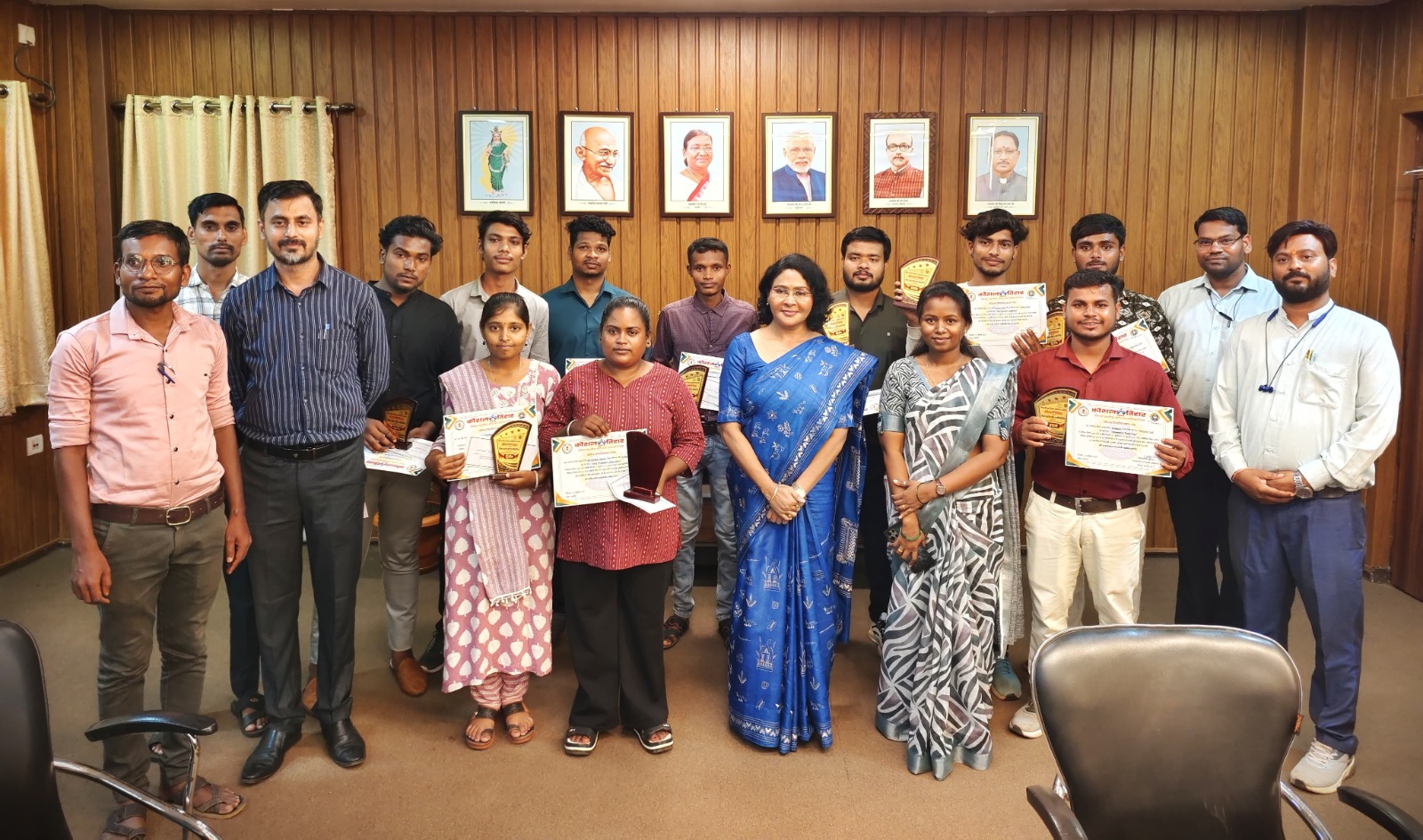 बालोद।बालोद के हुनरमंद युवाओं ने ‘कौशल तिहार 2025’ के जिला स्तरीय मुकाबलों में अपना टैलेंट दिखाया और कलेक्टर दिव्या उमेश मिश्रा से सम्मानित होकर लौटे। संयुक्त जिला कार्यालय में हुए सम्मान समारोह में कलेक्टर ने सभी विजेताओं को प्रमाण पत्र और प्रतीक चिन्ह देकर उनके उज्ज्वल भविष्य की शुभकामनाएं दीं।