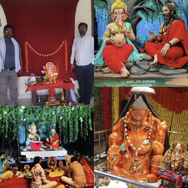 शहर के बुधवारी बाजार, कचहरी चौक, बस स्टैंड, आमापारा, पुराना बस स्टैंड, सदर मार्ग, गांधी भवन, नयापारा, मोखला माझी मंदिर, गंगा सागर तालाब पार और तहसील कार्यालय समेत लगभग दर्जन भर स्थानों पर बड़ी-बड़ी गणेश प्रतिमाएं स्थापित की गईं। घरों में भी मिट्टी की प्रतिमाएं विराजीं।