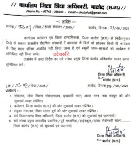 बालोद प्रशासन का यह कदम बच्चों की शिक्षा के अधिकार की रक्षा के साथ-साथ शिक्षा तंत्र में अनुशासन और जवाबदेही सुनिश्चित करने की दिशा में एक सकारात्मक और ऐतिहासिक पहल है।