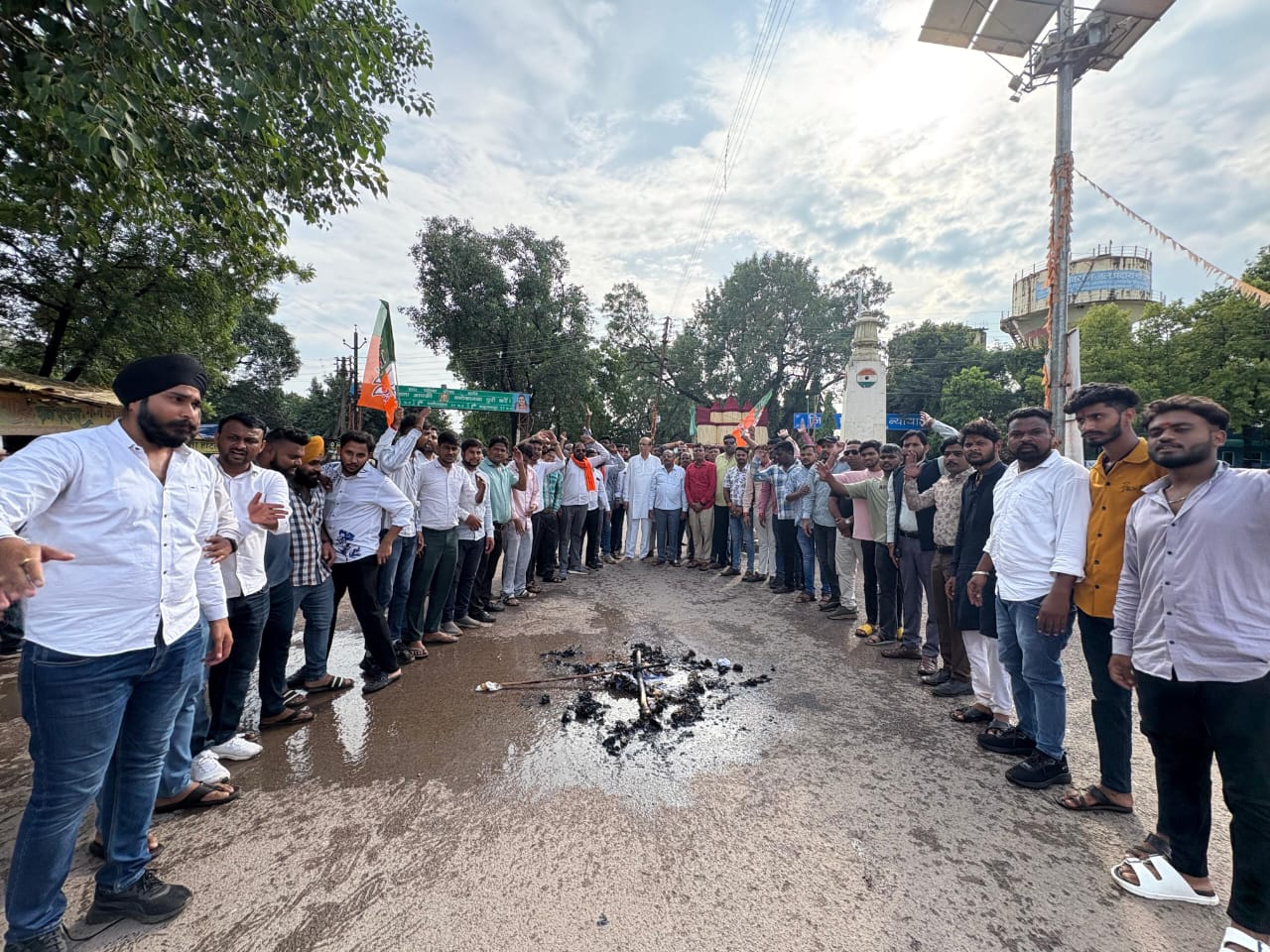 बालोद। जिला मुख्यालय स्थित जयस्तंभ चौक में भारतीय जनता युवा मोर्चा (भाजयुमो) के कार्यकर्ताओं ने कांग्रेस नेता राहुल गांधी का पुतला दहन कर जोरदार विरोध प्रदर्शन किया। इस दौरान कार्यकर्ताओं ने “राहुल गांधी मुर्दाबाद” और “कांग्रेस पार्टी मुर्दाबाद” के नारे लगाए। बारिश के बीच भी बड़ी संख्या में युवा मोर्चा कार्यकर्ता विरोध में सड़क पर उतरे।