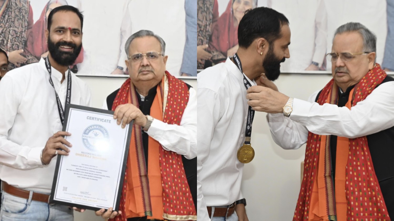 छत्तीसगढ़ के योग शिक्षक धीरज शर्मा ने रचा इतिहास, अधोमुख श्वानासन में बनाया वर्ल्ड रिकॉर्ड