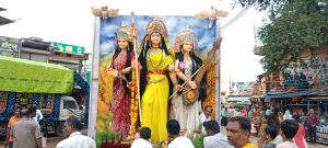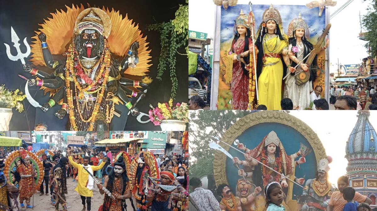 शहर की विभिन्न दुर्गा समितियों ने डीजे-धुमाल और लाउडस्पीकर पर सेवा गीत और जयकारों के साथ शोभायात्रा निकाली। कई समितियों ने बाहर से आए कलाकारों की झांकियां भी प्रस्तुत कीं। सदर मार्ग पर दुर्गा, काली और सरस्वती की प्रतिमाओं की लंबी कतारें देखने को मिलीं। यातायात व्यवस्था बनाए रखने के लिए पुलिस ने बड़े वाहनों का प्रवेश बंद कर दिया था और सिर्फ दुपहिया वाहनों को अनुमति दी गई।