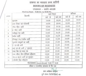 पहले बालोद डाकघर का समय सुबह 9 बजे से शाम 5 बजे तक था। नई समय-सारिणी अब दुर्ग संभाग के अन्य डाकघरों — जैसे भिलाई, बेमेतरा और राजनांदगांव — में भी लागू की जा रही है।