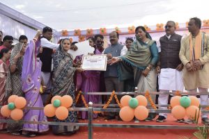 लाभार्थियों को चाबी और खिलाड़ियों को सम्मान
