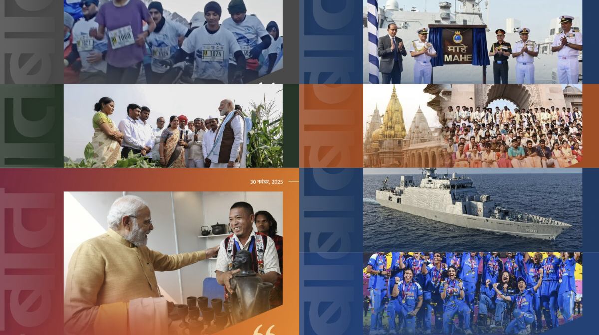 उन्होंने कहा कि नवंबर प्रेरणाओं से भरा रहा—26 नवंबर को संविधान दिवस पर सेंट्रल हॉल में विशेष कार्यक्रम, वंदेमातरम् के 150 वर्ष की शुरुआत, अयोध्या राम मंदिर पर धर्मध्वजा आरोहण और कुरुक्षेत्र में पांचजन्य स्मारक का लोकार्पण जैसे ऐतिहासिक क्षणों ने देश को गौरवान्वित किया।