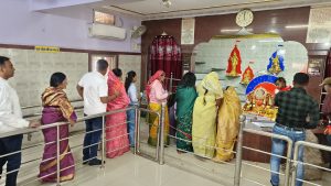 गंगा मैया मंदिर में श्रद्धालुओं की लंबी कतार