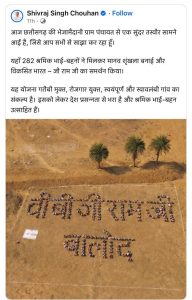 अपने संदेश में उन्होंने लिखा कि छत्तीसगढ़ की भेजा मैदानी पंचायत से एक सुंदर और प्रेरक दृश्य सामने आया है, जहां 282 श्रमिकों ने एकजुट होकर मानव श्रृंखला बनाई और ‘विकसित भारत जी राम जी’ के संकल्प को समर्थन दिया। यह पहल गरीबी से मुक्ति, रोजगार की गारंटी, आत्मनिर्भरता और स्वावलंबी गांव की दिशा में मजबूत कदम है—ऐसा संकल्प जो देश को उत्साह से भर देता है।