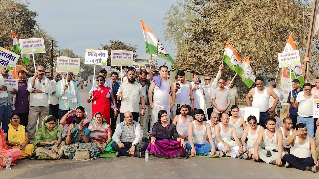 अर्धनग्न होकर कांग्रेस कार्यकर्ताओं का चक्काजाम