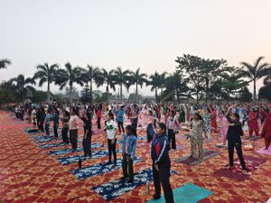 प्रशासनिक अधिकारी, कर्मचारी, पुलिस जवान, पत्रकार, गणमान्य नागरिक, व्यापारी वर्ग और स्कूल-कॉलेज के छात्र-छात्राओं की बड़ी भागीदारी ने यह साबित किया कि शहर में योग के प्रति जागरूकता और लगाव लगातार बढ़ रहा है। डांसिंग बीट्स पर जमकर जुंबा करने के बाद प्रतिभागियों ने सूर्य नमस्कार, विभिन्न आसनों, प्राणायाम और ध्यान का अभ्यास किया।