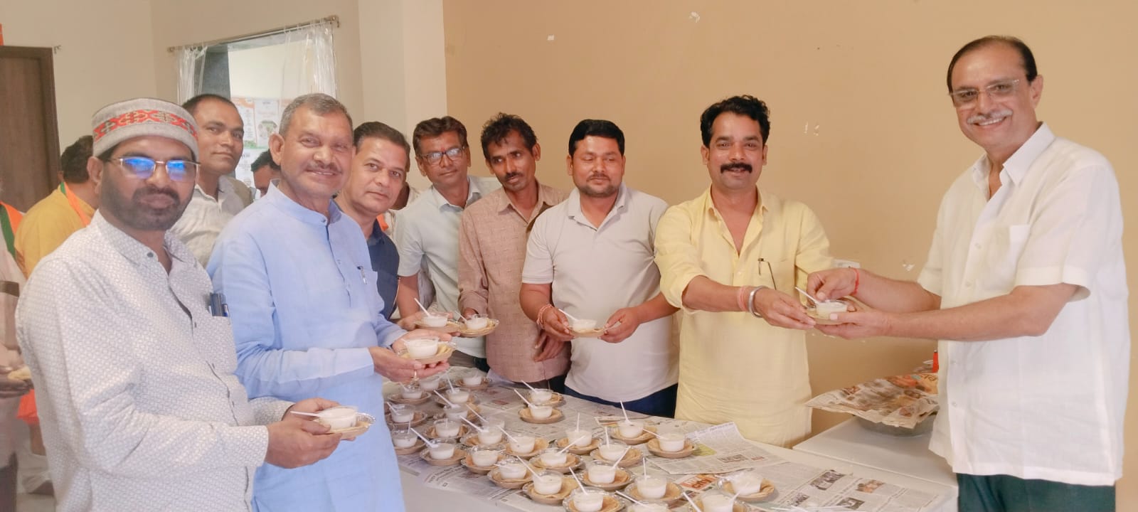 कार्यक्रम के दौरान विधिवत आरती संपन्न कर प्रसाद वितरण किया गया। प्रसाद स्वरूप खीर-पूरी बांटी गई तथा कार्यालय के बाहर राहगीरों को भी खीर-पूरी वितरित कर सेवा भाव का संदेश दिया गया। पूरे आयोजन में कार्यकर्ताओं का उत्साह देखते ही बन रहा था।