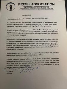 जानकारी के अनुसार, राजधानी दिल्ली के 9, रफी मार्ग स्थित यूएनआई परिसर में अचानक सरकारी अधिकारियों, दिल्ली पुलिस और अर्धसैनिक बलों के लगभग 300 जवानों के साथ प्रवेश कर कर्मचारियों को तत्काल न्यूजरूम खाली करने के लिए दबाव बनाया गया। कर्मचारियों ने प्रबंधन के आने तक समय देने और कार्रवाई से संबंधित लिखित आदेश दिखाने की मांग की, लेकिन कथित तौर पर कोई स्पष्ट दस्तावेज प्रस्तुत नहीं किया गया।