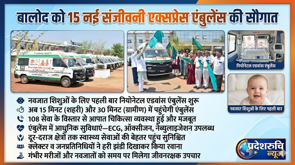जिले को प्राप्त इन एंबुलेंसों में 14 बेसिक लाइफ सपोर्ट और एक एडवांस्ड लाइफ सपोर्ट एंबुलेंस शामिल है। विशेष बात यह है कि बालोद में पहली बार नियोनेटल एडवांस एंबुलेंस सेवा की शुरुआत की गई है, जो नवजात शिशुओं की आपातकालीन देखभाल के लिए अत्याधुनिक सुविधाओं से सुसज्जित है। इससे गंभीर परिस्थितियों में नवजातों के जीवन को बचाने में महत्वपूर्ण सहायता मिलेगी।