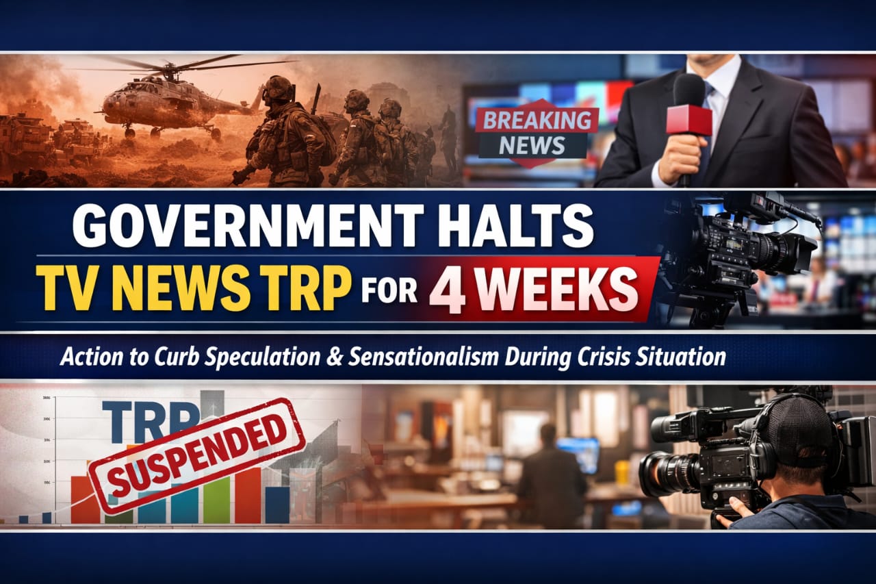 नई दिल्ली।सरकार ने टीवी समाचार चैनलों की टीआरपी रिपोर्टिंग पर चार सप्ताह के लिए रोक लगाने का निर्देश दिया है। यह फैसला संकट और संघर्ष जैसी परिस्थितियों के दौरान कुछ चैनलों में बढ़ती अटकलबाजी और सनसनीखेज प्रस्तुति को देखते हुए लिया गया है।