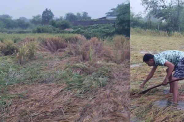 बारिश ने बिगाड़ा किसानों का खेल,खेतों में गिरने लगी धान की फसल, किसानों के चेहरे से गायब हुई दिवाली की रौनक