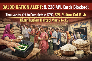 बालोद में हजारों राशनकार्डधारियों का ई-केवाईसी अधूरा, बीपीएल के राशन पर कटौती का खतरा — एपीएल के 8,226 कार्ड ब्लॉक, 21–25 मार्च तक वितरण बंद