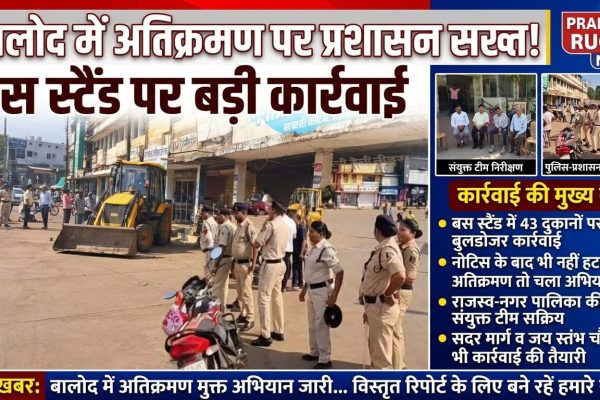 बालोद में अतिक्रमण पर बुलडोजर एक्शन: बस स्टैंड की 43 दुकानें हटाईं, आगे सदर मार्ग-जय स्तंभ चौक पर तैयारी