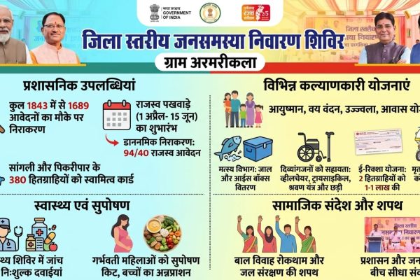 बालोद। गुरूर विकासखंड के ग्राम अरमरीकला में आयोजित जिला स्तरीय जनसमस्या निवारण शिविर ग्रामीणों के लिए सौगातों से भरा रहा। शिविर में विभिन्न विभागों को प्राप्त कुल 1843 आवेदनों में से 1689 का मौके पर ही निराकरण किया गया, जिससे ग्रामीणों में प्रशासन के प्रति विश्वास और उत्साह देखने को मिला। शिविर में विधायक संगीता…