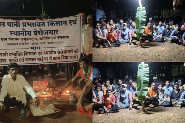 दीपावली पर भी नहीं थमा लाल पानी प्रभावितों का आंदोलन, रातभर पंडाल में डटे रहे ग्रामीण